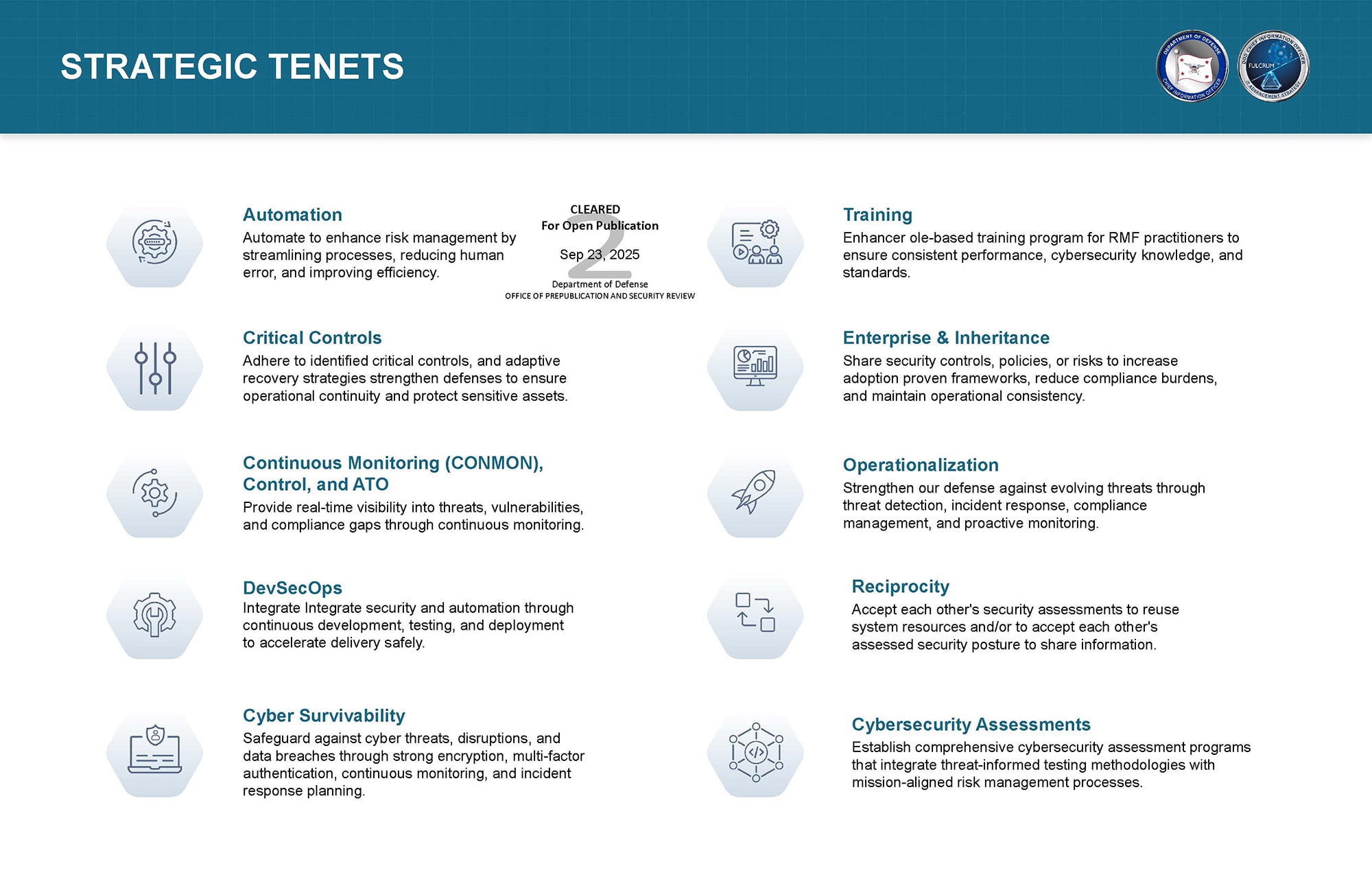 DoW/DoD CSRMC Tenets. In no particular order: